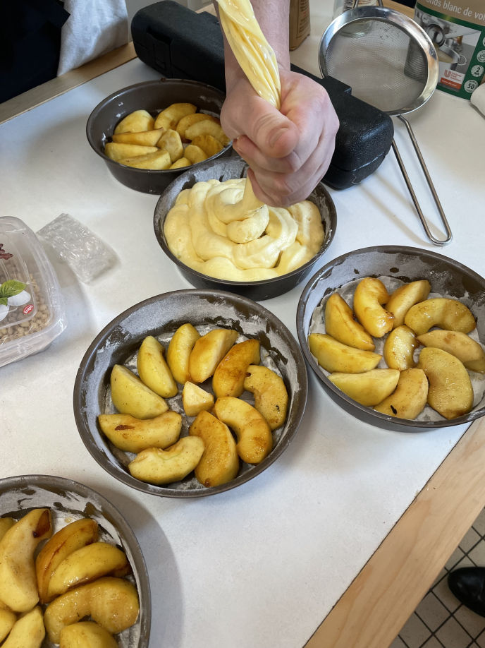 | Les étapes de la confection du qautre quart aux pommes façon tatin (Cliquer sur l'image pour la voir en plein écarn) |